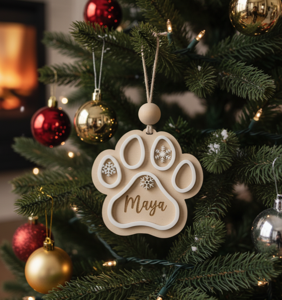 Personnalisez votre décoration de Noël avec nos ornements uniques en forme de patte de chien/chat. Le cadeau parfait pour les amoureux des animaux.