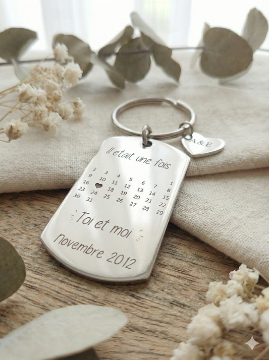 Porte clés calendrier personnalisé date gravée/Cadeau couple/Naissance/Anniversaire ...Porte-clés Calendrier Gravé Personnalisé - Cadeau Couple Date de Rencontre - Acier Inoxydable - Souvenir Saint Valentin et Anniversaire