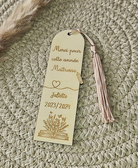 Marque-Page en Bois Personnalisé - (Cadeau de fin d'année, Maîtresse, Nounou, Atsem ...)